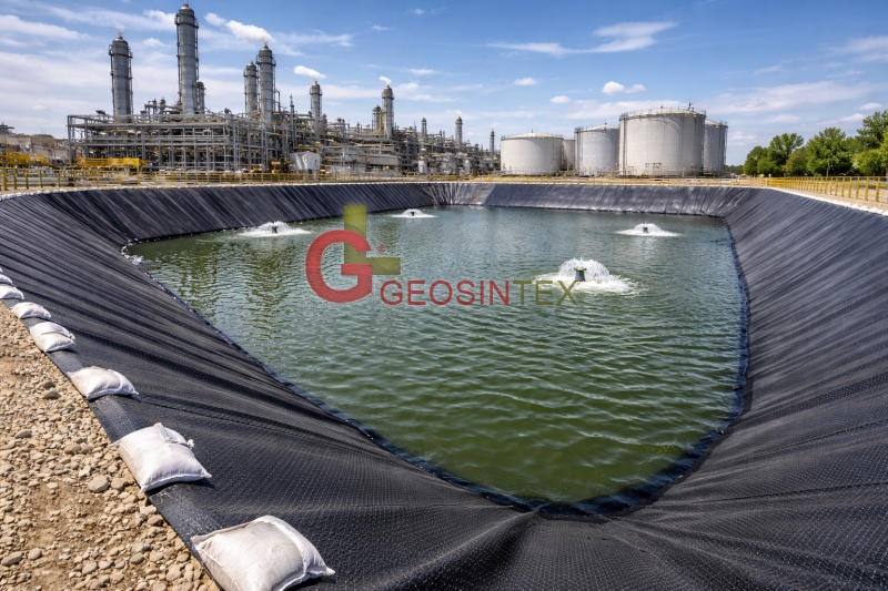 Geomembrană HDPE texturată utilizată pentru impermeabilizarea bazinelor industriale și lucrări de in